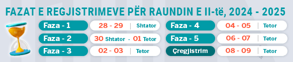 Njoftohen të gjithë aplikantët maturantë fitues të raundit të dytë, të ciklit të parë Bachelor, viti akademik 2024-2025, për Fakultetin e Historisë dhe të Filologjisë, që të paraqiten në Sekretarinë Mësimore FHF për të kryer regjistrimin në një nga programet e studimit në të cilin janë shpallur fitues.